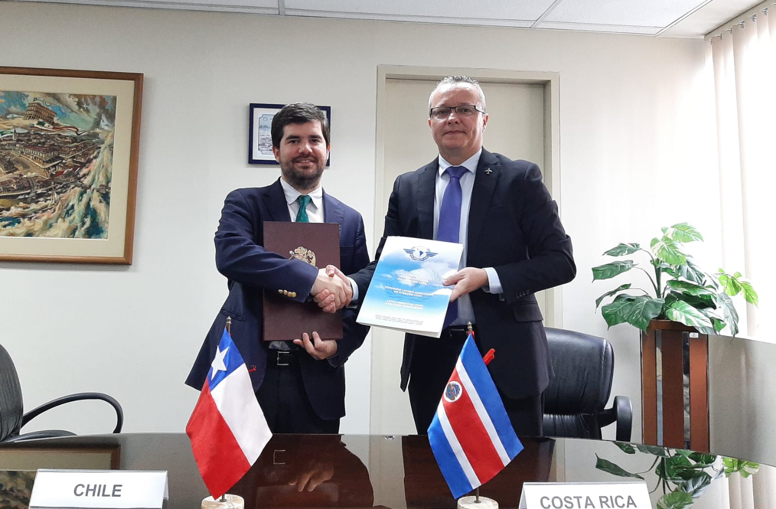 El Secretario General de la JAC aprovechó también este encuentro para suscribir, previo otorgamiento de los respectivos plenos poderes por parte de MINREL, el Convenio de Transporte Aéreo entre Chile y Costa Rica, mediante el cual ambos Estados se concede recíprocamente amplios derechos de tráfico en un marco de liberalización.
