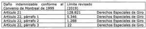 La Organización de Aviación Civil Internacional, en su calidad de depositario del Convenio, debe revisar los límites de responsabilidad cada cinco años, en cumplimiento de lo cual y como resultado de la revisión efectuada en 2019, determinó que el índice de inflación en el período respectivo fue de un 13,9%, debiéndose, por tanto, reajustar los límites de responsabilidad quedando éstos en los montos señalados en la tabla precedente.